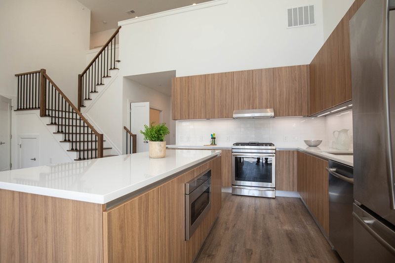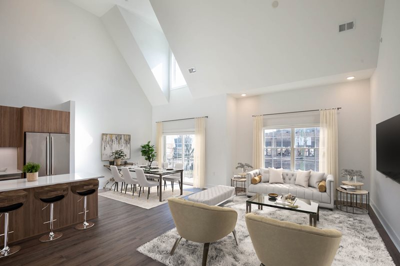 The Dayton offers a range of exquisite amenities designed to enhance your apartment living experience. Each residence features spacious layouts with 9-foot ceilings throughout, while select homes boast vaulted ceilings and corner layouts, along with options for lofts and dens. The gourmet kitchens are a chef's dream, equipped with European quartz countertops, imported Italian custom cabinetry, and a fireplace in select apartments. For your comfort and convenience, each apartment includes an in-suite washer and dryer, resident-controlled central air and heat, and a private patio or balcony for your personal retreat. Embracing smart living, The Dayton features a smart latch access system, allowing you to enter your home effortlessly via an app. On-site and guest parking is conveniently located just outside your door, complemented by charging stations for electric vehicles. Plus, you can enjoy peace of mind knowing that The Dayton is a smoke-free community, promoting a healthy and serene living environment.