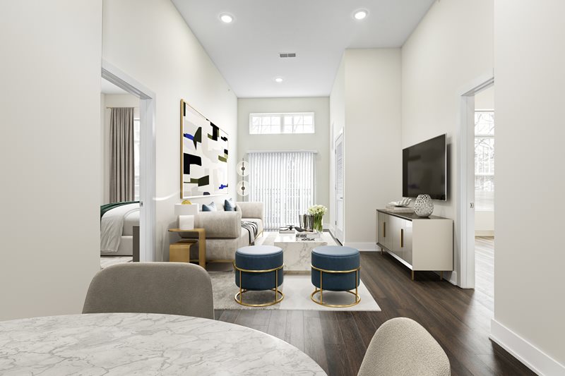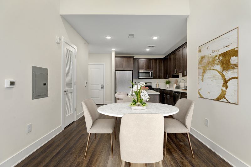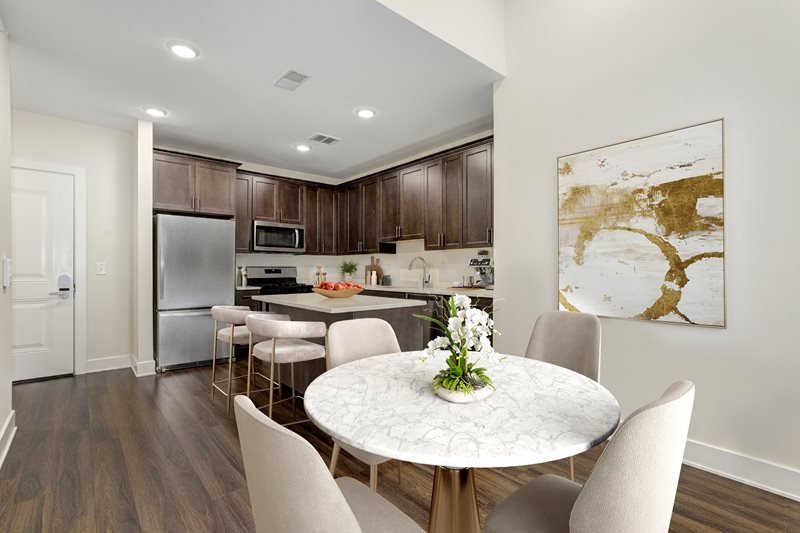 There are many 1- and 2- bedroom layouts that feature spacious floor plans and come complete with many luxury-living upgrades. As this is one of our new apartment communities, they come complete with Caesarstone countertops, an eat-in kitchen, and stainless-steel appliances such as a dishwasher, range hood, oven/range, and refrigerator/freezer.