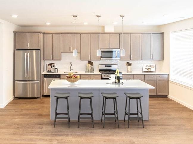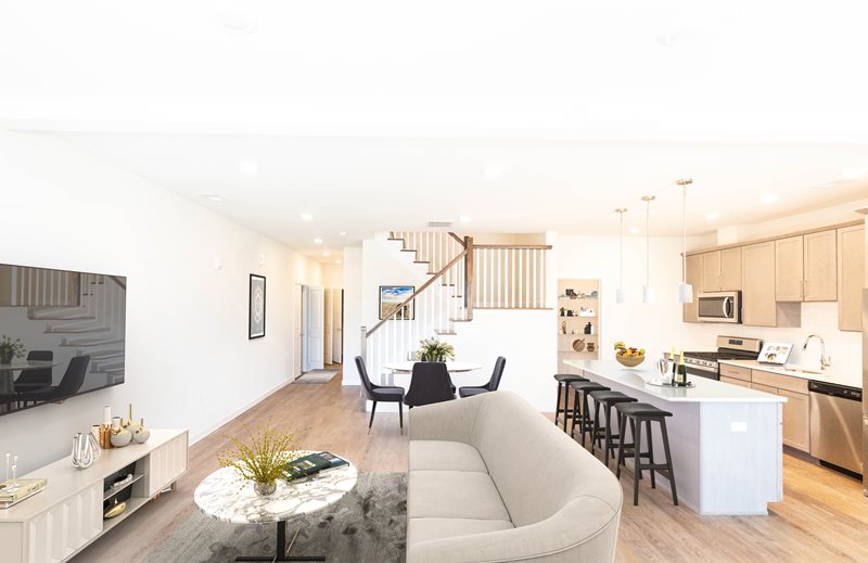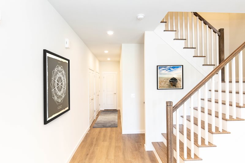 Discover a range of spacious 2- and 3-bedroom townhome layouts boasting 9-foot ceilings, wood plank flooring, and luxurious finishes. Each home showcases modern features such as quartz countertops, stainless steel appliances, and custom walk-in closets, alongside practical additions like entryway mudrooms with storage cubbies.