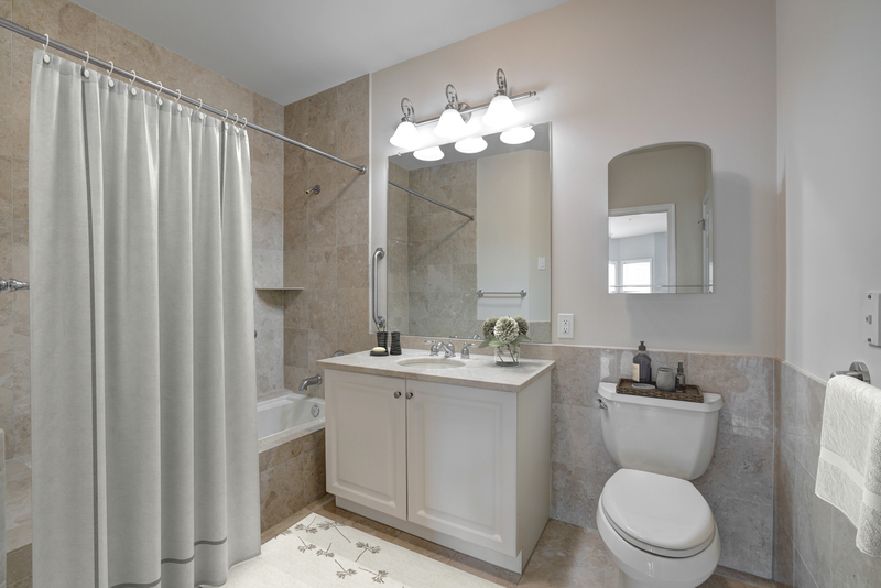 Step into your new home and be greeted by the finest features that blend functionality with high-end aesthetics. Enjoy the sleek, modern look of granite kitchen countertops and the timeless elegance of an Italian marble bathroom. Cook with ease and pleasure using top-of-the-line KitchenAid stainless steel appliances, and relish in the soft, plush wall-to-wall carpet. Each residence includes a private patio or balcony, jet tub, and resident-controlled central air and heat to ensure comfort. Convenience is paramount, and our in-suite washer and dryer ensure that laundry day is a breeze.