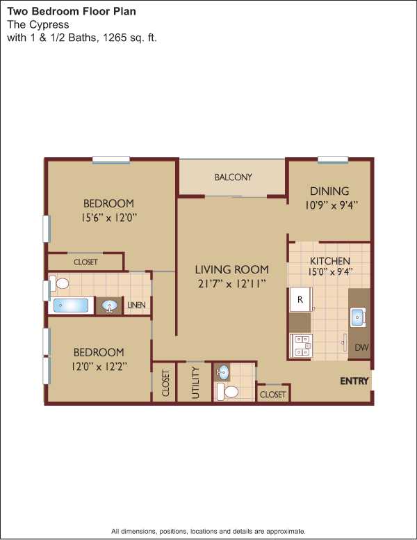 Apartments boast spacious floor plans with interiors that range in size from 920 to 1715 square feet of luxurious living space. Residences are available with one or two bedrooms, one bath and a host of amenities including individually controlled heat and central air, washer and dryer (per plan), built-in dishwasher, range with hood, refrigerator, full dining room, wall-to-wall carpeting, ample closet space, private balconies and individual entrances. Our spacious apartments offer the perfect space for a home office or childrens play area.