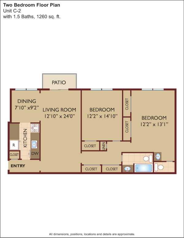 The community boasts 336 one or two bedroom units that range in size from 870 to 1,260 square feet of living space. Each residence features an eat-in kitchen with dishwasher, oven, air conditioner, walk-in closets and private patio or balcony. Evergreen Meadows's spacious apartments offer the perfect space for a home office or childrens play area.
