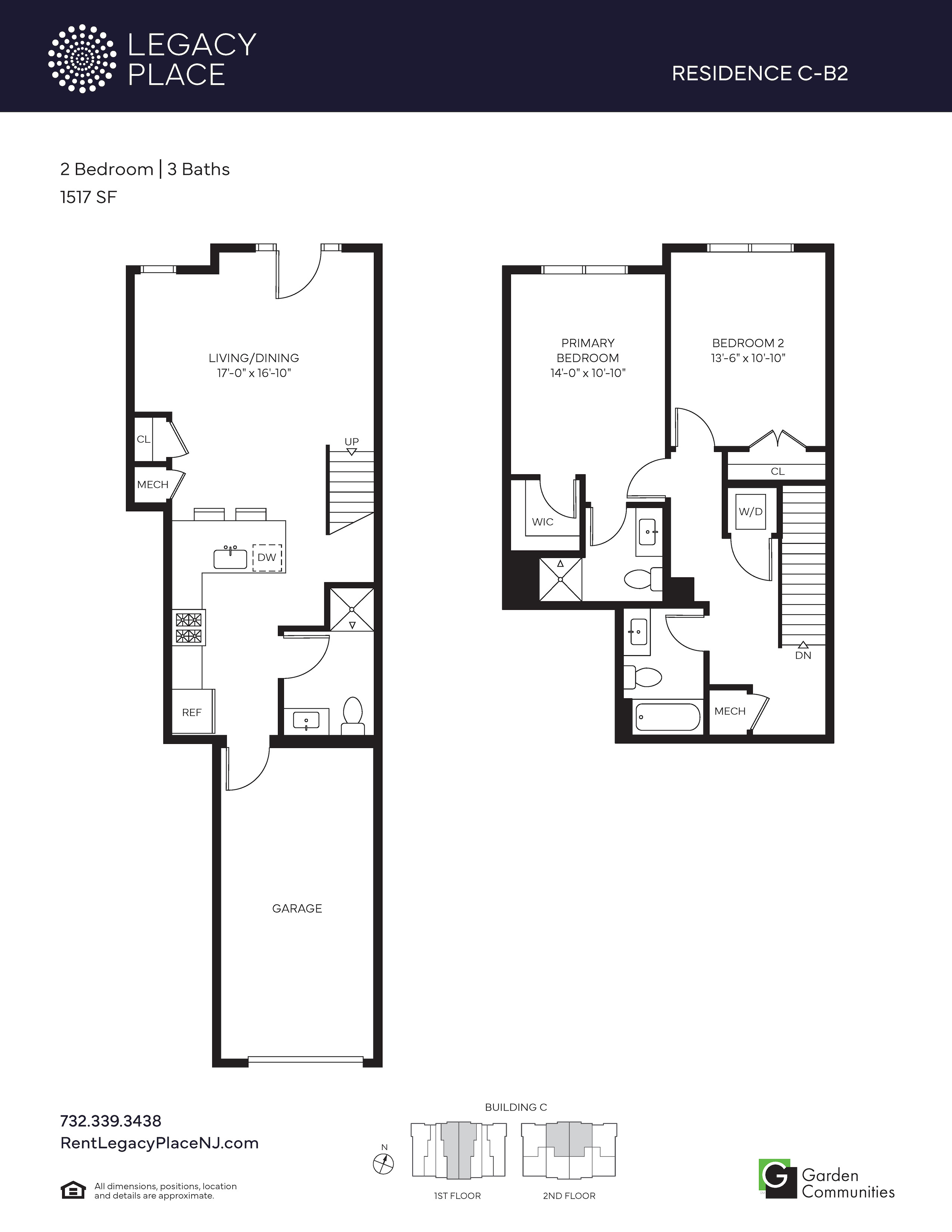 Featuring gourmet kitchens with custom cabinetry and stainless-steel appliances, sumptuous baths, oversized walk-in closets, and washers and dryers in every home, these spaciously designed residences also offer an array of high-tech features including remote keyless entry, Wi-Fi connectivity, resident-controlled central air and heat, and EV charging stations. Just minutes from Routes 1, 18, I-287 and I-95, Legacy Place offers easy access to virtually everywhere – whether you’re heading to work, school, The Jersey Shore, Newark Liberty International Airport, or New York City.