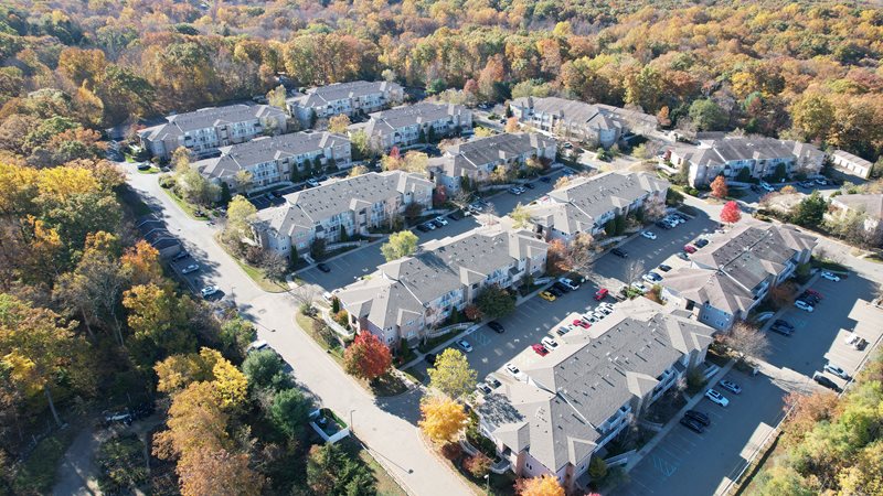 Each rental residence in this quaint condominium community boasts a number of sought-after appointments including kitchens with a breakfast bar, dishwasher, oven and microwave, carpeting throughout, jet tub, central vacuum, central air conditioning, ceiling fans, walk-in closet and a private patio or balcony (per plan). Each two-bedroom condominium residence has 1,165 square feet of luxurious living space. These spacious apartments provide the perfect space for a home office or childrens play area.