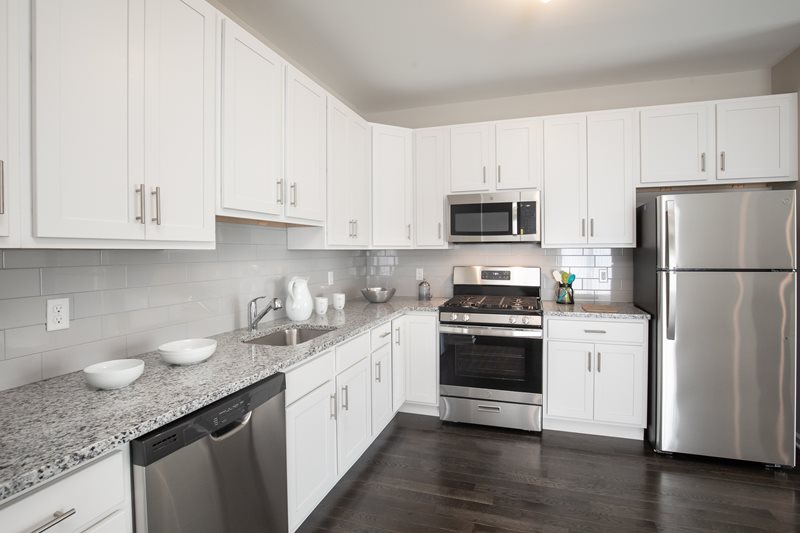 Indulge in chef-inspired kitchens with granite countertops and modern stainless-steel appliances. Each home boasts individually controlled central heat and air conditioning, in-suite washer and dryer, while townhomes feature hardwood flooring on the first floor and a single-car garage. Select townhomes also offer basements, front porches, and back decks. Our spacious layouts provide ample space for a home office or nursery.