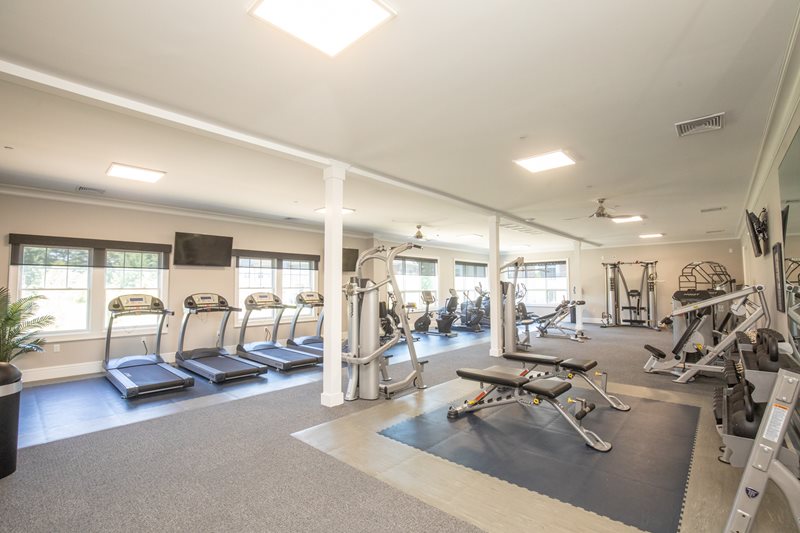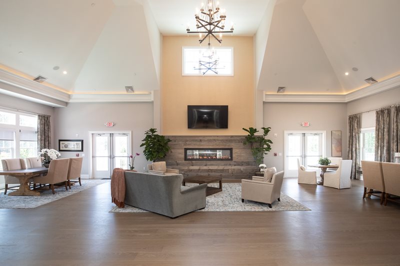 Living at Pondview Estates is almost like staying at a year-round resort. The community features a sprawling 5,000 square foot clubhouse with a state-of-the art fitness center, yoga studio, bowling alley, game room, sports simulator, business center and resident lounges. Outside, there’s an Olympic-size heated saltwater pool, sundecks and BBQ areas, tennis and pickleball, a putting green, bocce and basketball courts and a jogging path with fit stops. There are also children’s playgrounds, designated parks for small and large dogs, plus miles of nature trails that wind through the woods. The Waterside Retreat, Pondview Estates’ newest addition, is a standalone haven for self-care, featuring spa facilities that include an indoor saltwater pool, saunas, a yoga studio, and serene views of the signature pond, alongside inviting outdoor spaces for relaxation and socializing.