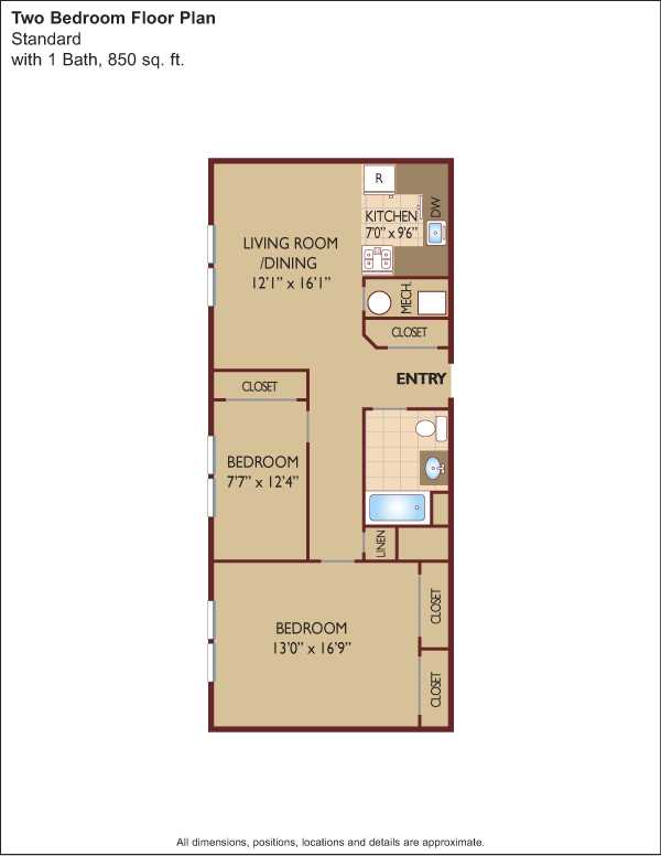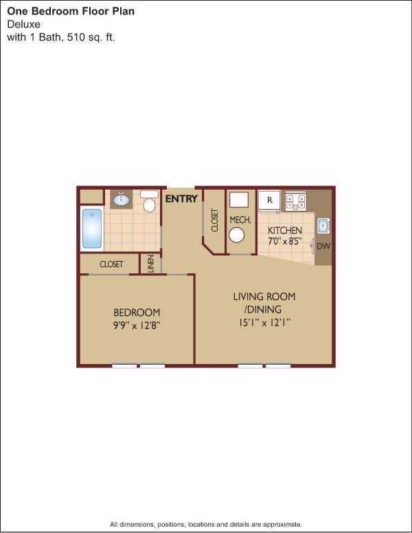Each residence boasts contemporary kitchens with dishwasher, refrigerator, oven and microwave, carpeting throughout, jet tub and central air conditioning. Apartments are available with either one or two bedrooms and range from 437 to 1,300 square feet of space. These
