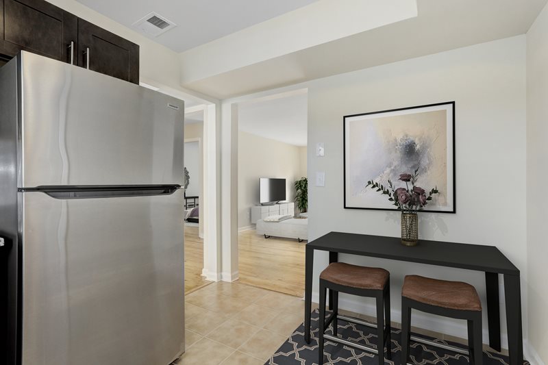 Our living rooms open to private patios or balconies, perfect for relaxation and entertaining. Apartments come with walk-in closets and extra storage space, ensuring you have ample room for all your belongings. Our select renovated residences elevate your lifestyle with modern kitchens featuring Wolf wood cabinets, self-closing drawers, stainless steel appliances, and granite countertops. The ceramic-tiled kitchen and dining areas, upgraded light fixtures, dining room chandeliers, upgraded bathrooms with glass shower doors, refinished hardwood flooring in second-floor residences, Venetian blinds, and bay windows add touches of elegance throughout your home.