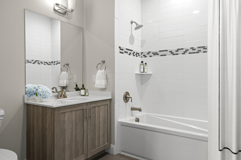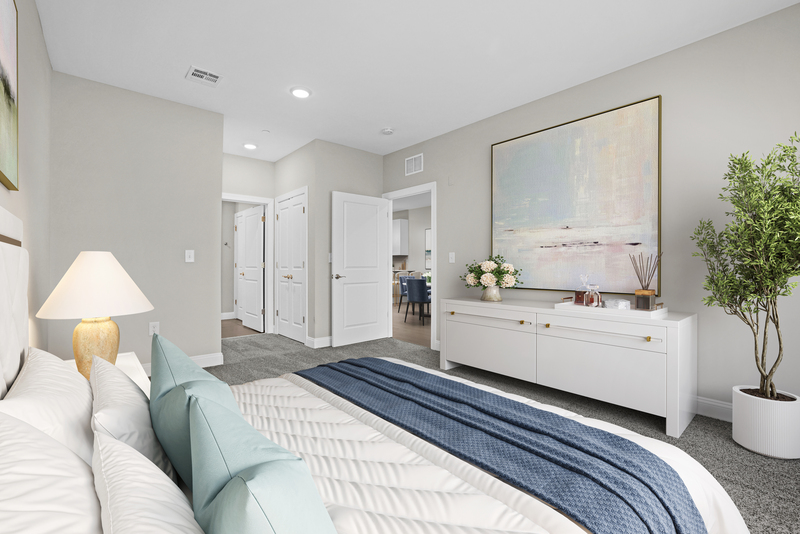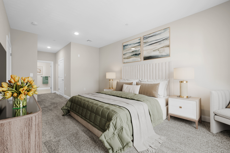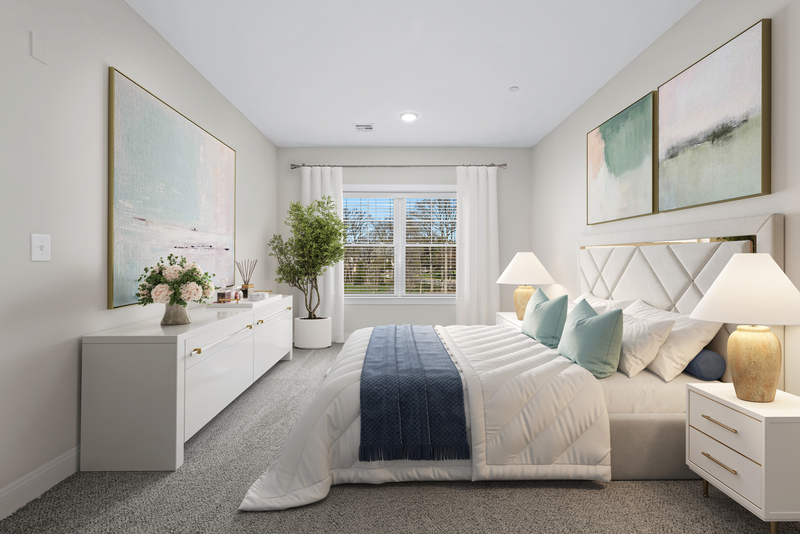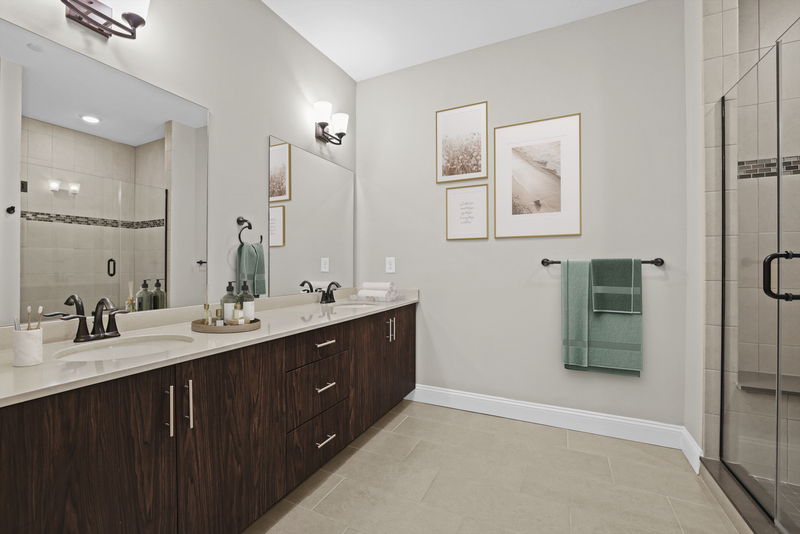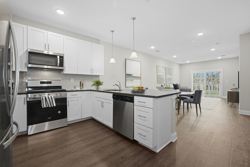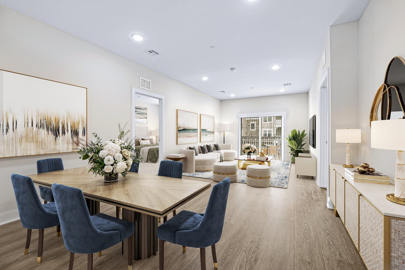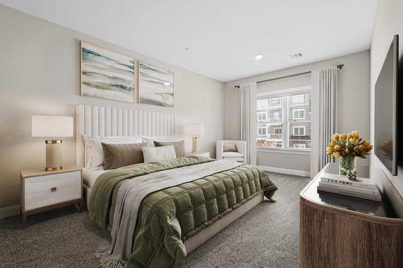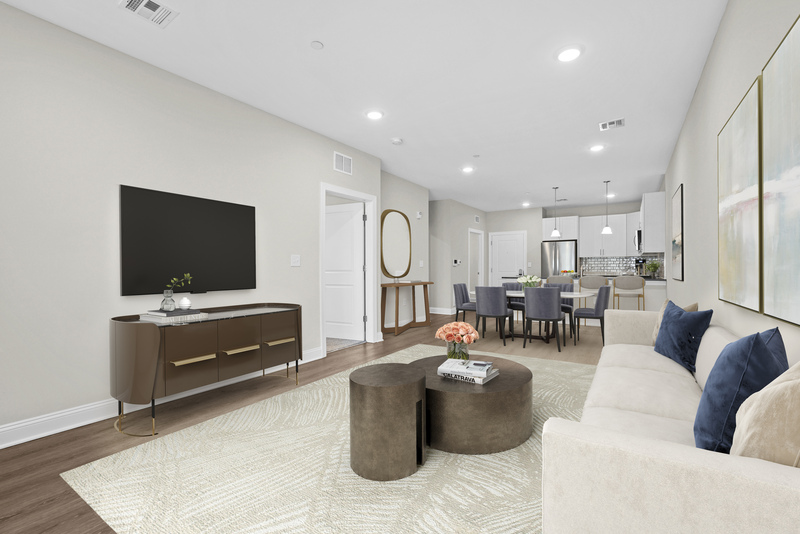 Designed for comfort, style, and functionality, our expansive one- and two-bedroom layouts provide a sophisticated living experience. Gourmet kitchens feature sleek quartz countertops, stainless steel appliances, and a convenient breakfast bar, making them perfect for entertaining or everyday meals. Wood plank flooring and soaring 9-foot ceilings create an open, airy ambiance, while plush carpeted bedrooms offer a cozy retreat. The primary suite is your personal oasis, boasting an oversized shower, a deep soaking tub, and a dual vanity for added luxury. Custom walk-in closets ensure you have plenty of storage, while an in-suite washer and dryer add an extra level of convenience. Each residence also includes individually controlled central air and heat, a smart latch access system, and a private balcony or patio to take in the beautiful surroundings.