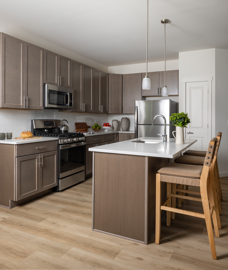 Inside our luxury apartments and townhomes, residents are greeted with open floor plan designs that flood each space with natural light, creating a welcoming atmosphere ideal for both relaxation and entertainment. Indulge in a range of apartment features designed to enhance your lifestyle, including eat-in kitchens equipped with stainless steel designer appliances, tiled bathrooms, and private patios or balconies perfect for enjoying the surrounding scenery. Each residence also features individual security systems and individually controlled central air and heat, providing peace of mind and comfort year-round.