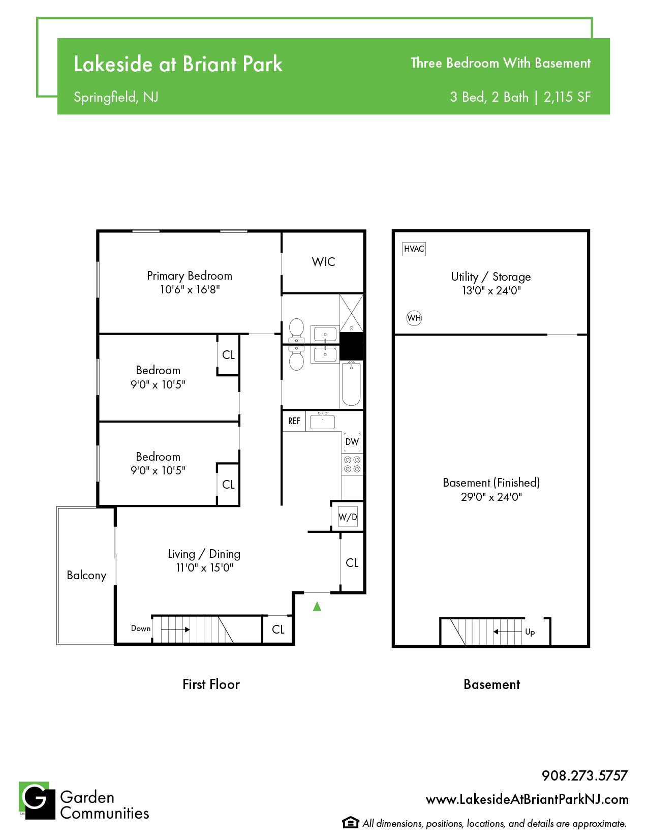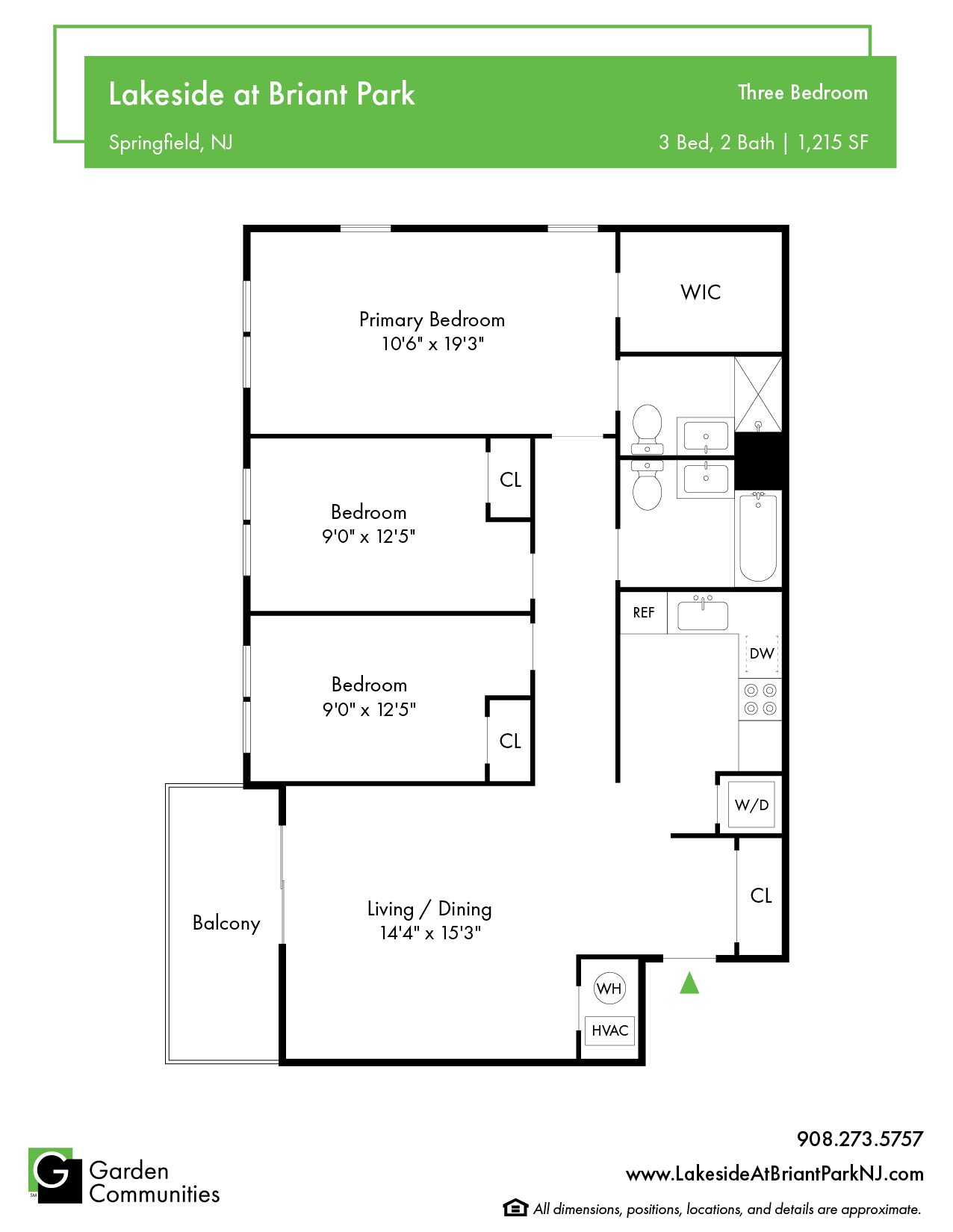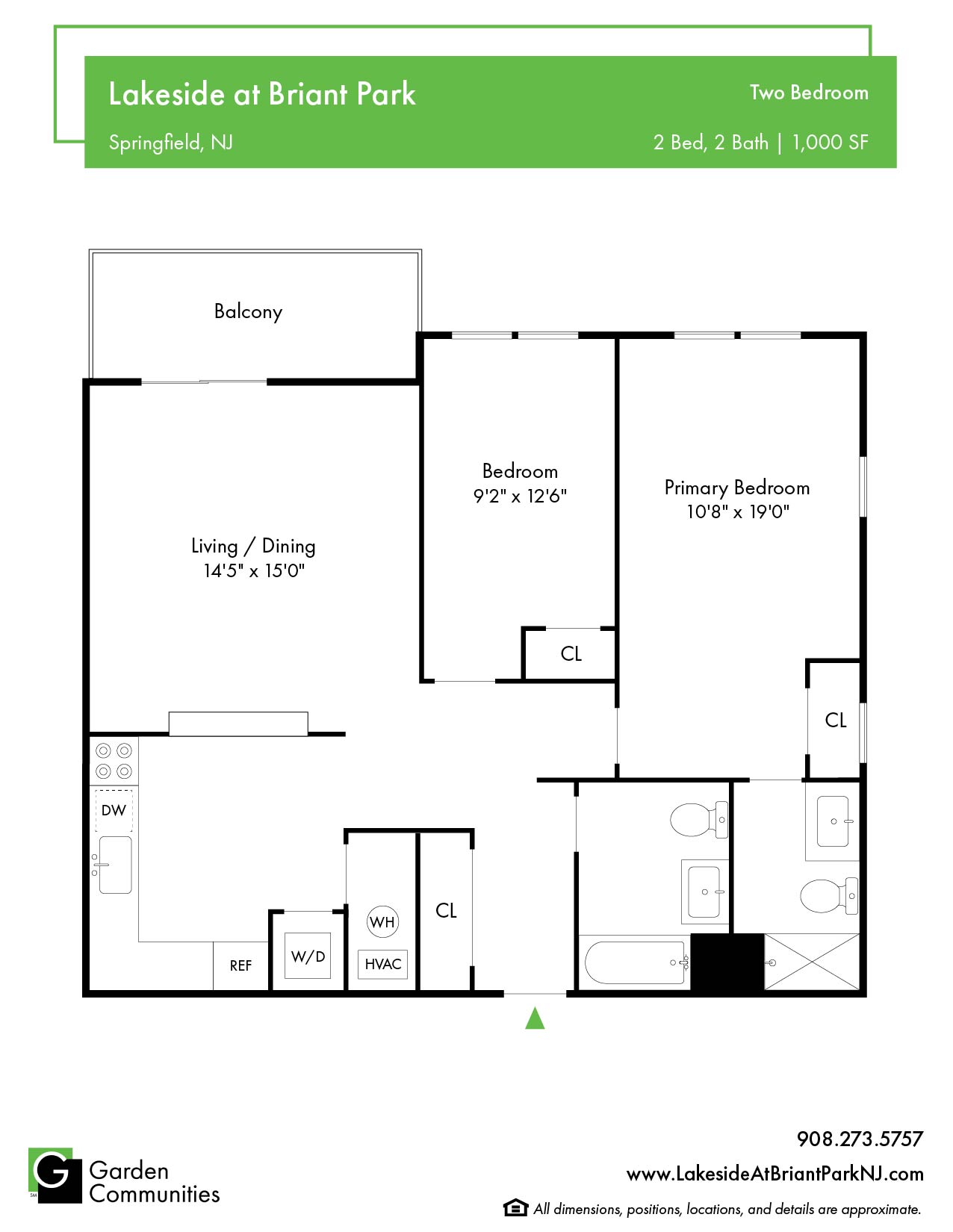 Welcome to Lakeside at Briant Park, a premier rental apartment community in Springfield, NJ, offering the perfect blend of tranquility and convenience. Our spacious two- and three-bedroom residences are thoughtfully designed to cater to your lifestyle needs. Each apartment features plush wall-to-wall carpeting, providing a cozy and comfortable living space. Enjoy the fresh air and scenic views from your private patio or balcony, and benefit from resident-controlled central air and heat to ensure your comfort year-round. With in-suite washers and dryers, laundry day is a breeze, and additional storage space is available to keep your home organized.