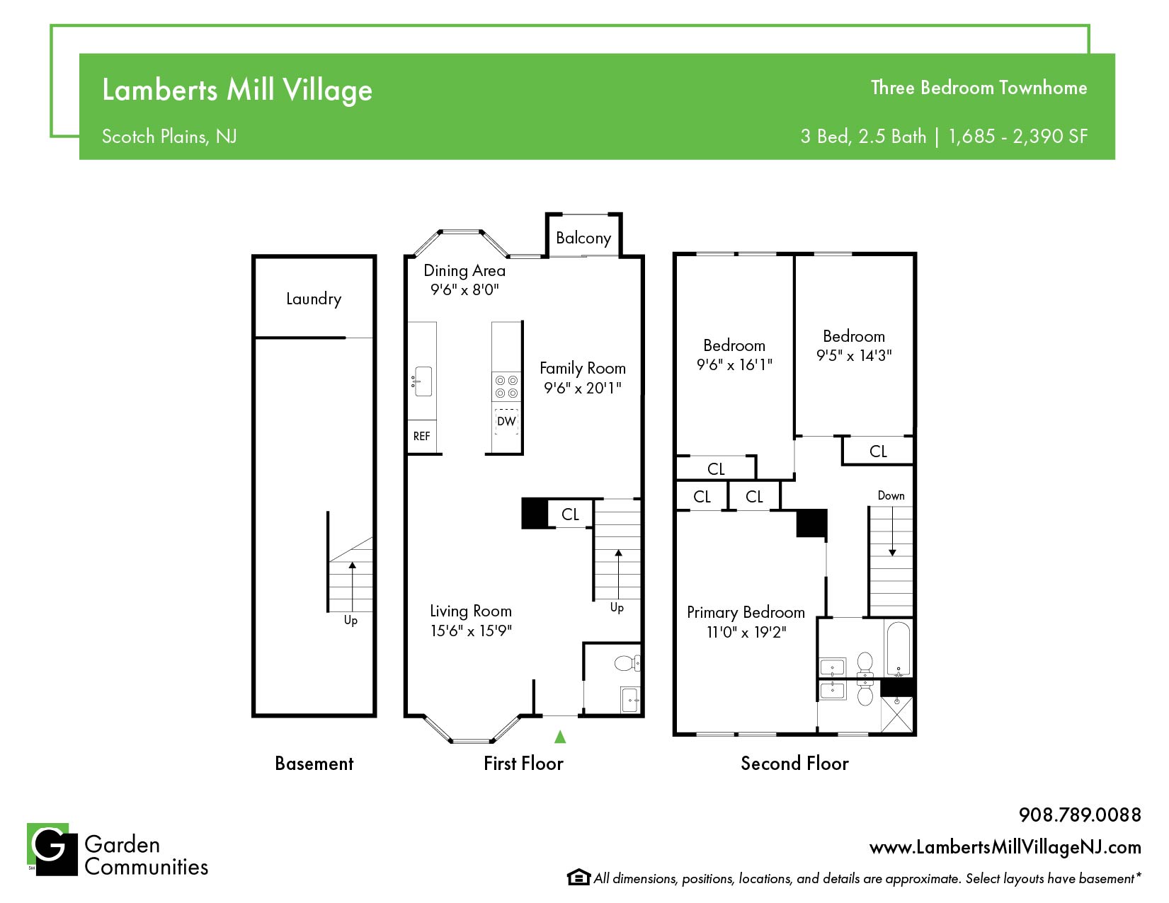 Apartments are available with one, two or three bedrooms and range in size from 935 to 1,685 square feet. Each spacious home boasts a number of sought after appointments including kitchens with refrigerators and ovens, carpeting and hardwood flooring, central air, washer and dryer and patio or balcony (per plan). Select apartments are available that feature a new kitchen with Granite counter- tops & ceramic tile flooring, Stainless Steel Appliances, ceramic tile entry, new bathroom, and two tone decorator paint colors. Lamberts Mill Village's spacious apartments provide the perfect space for a home office or children's play area.