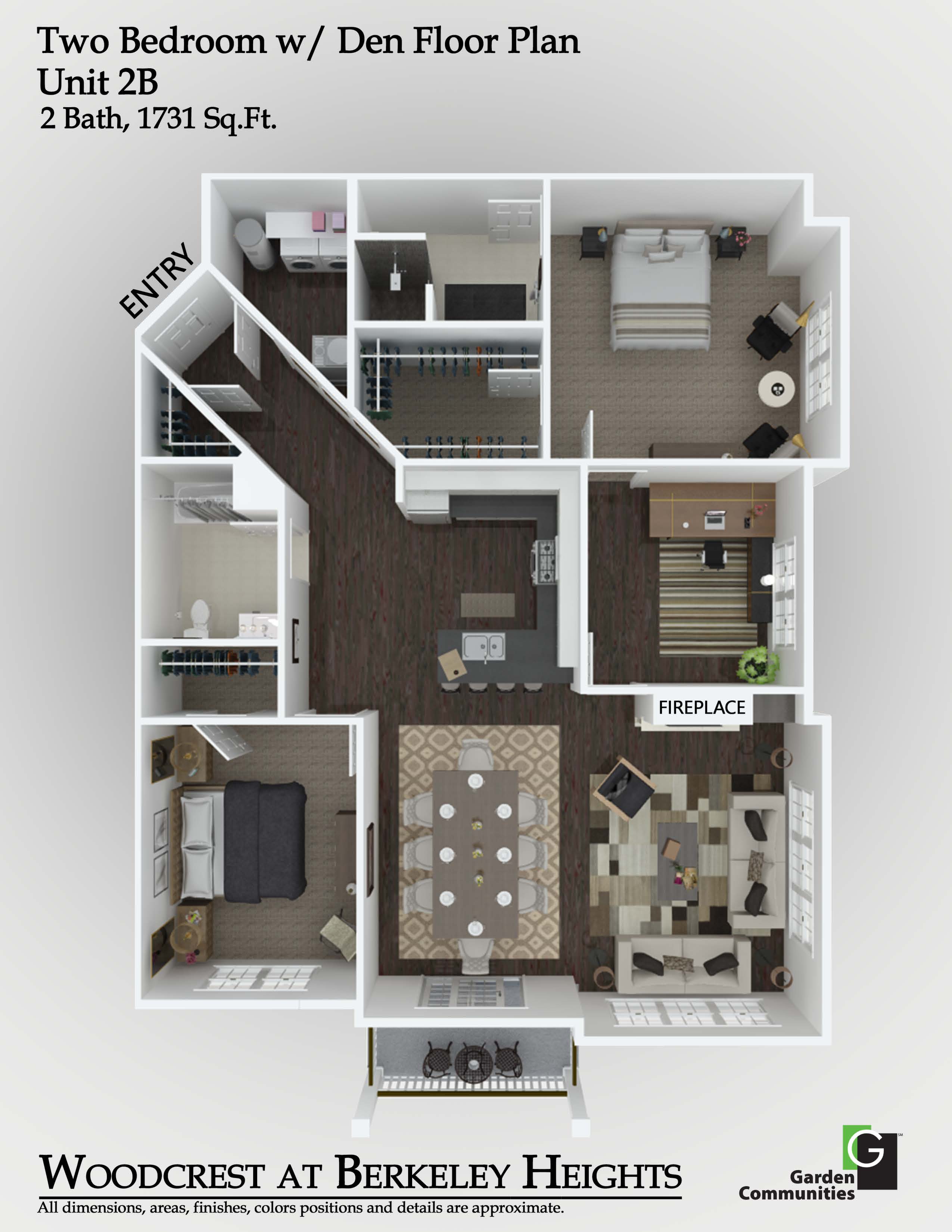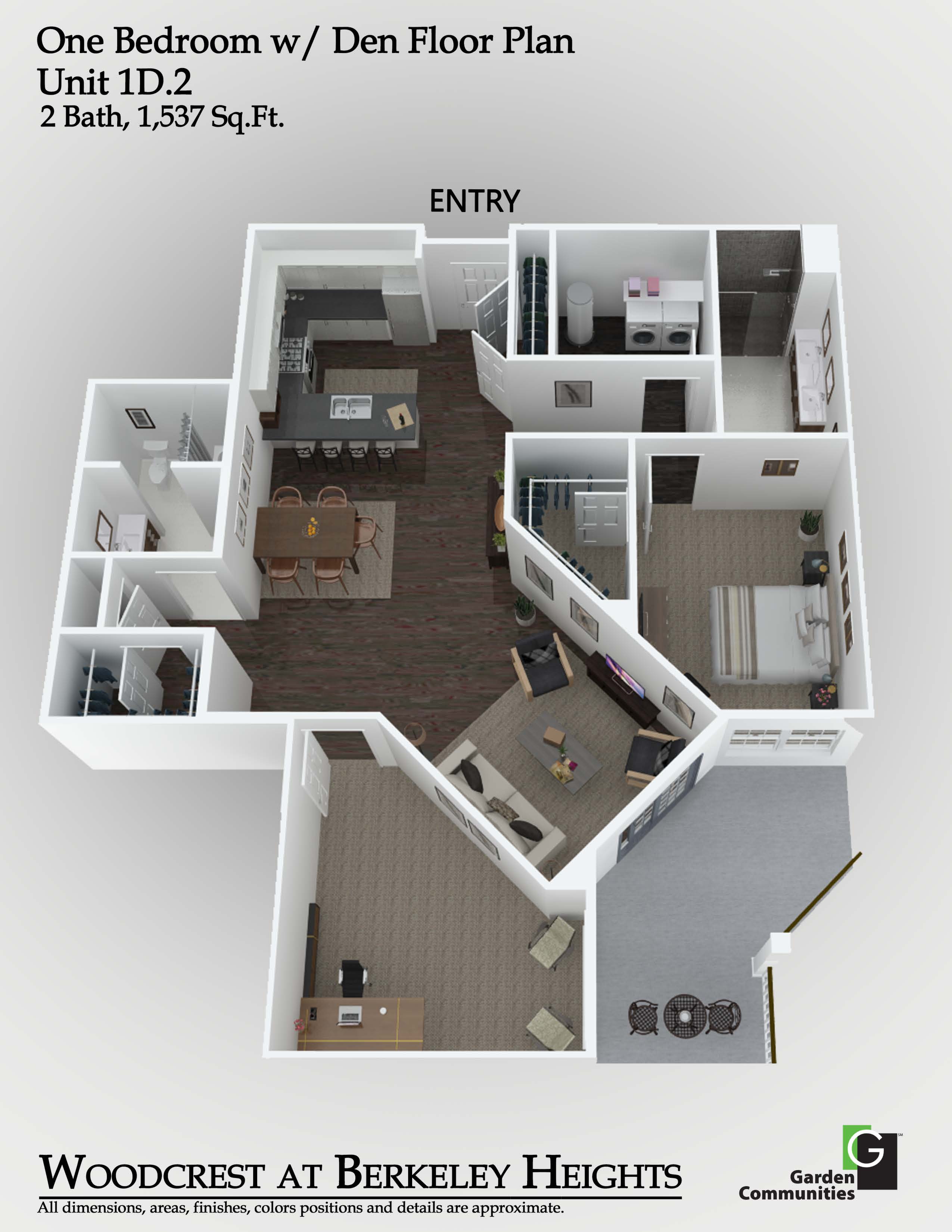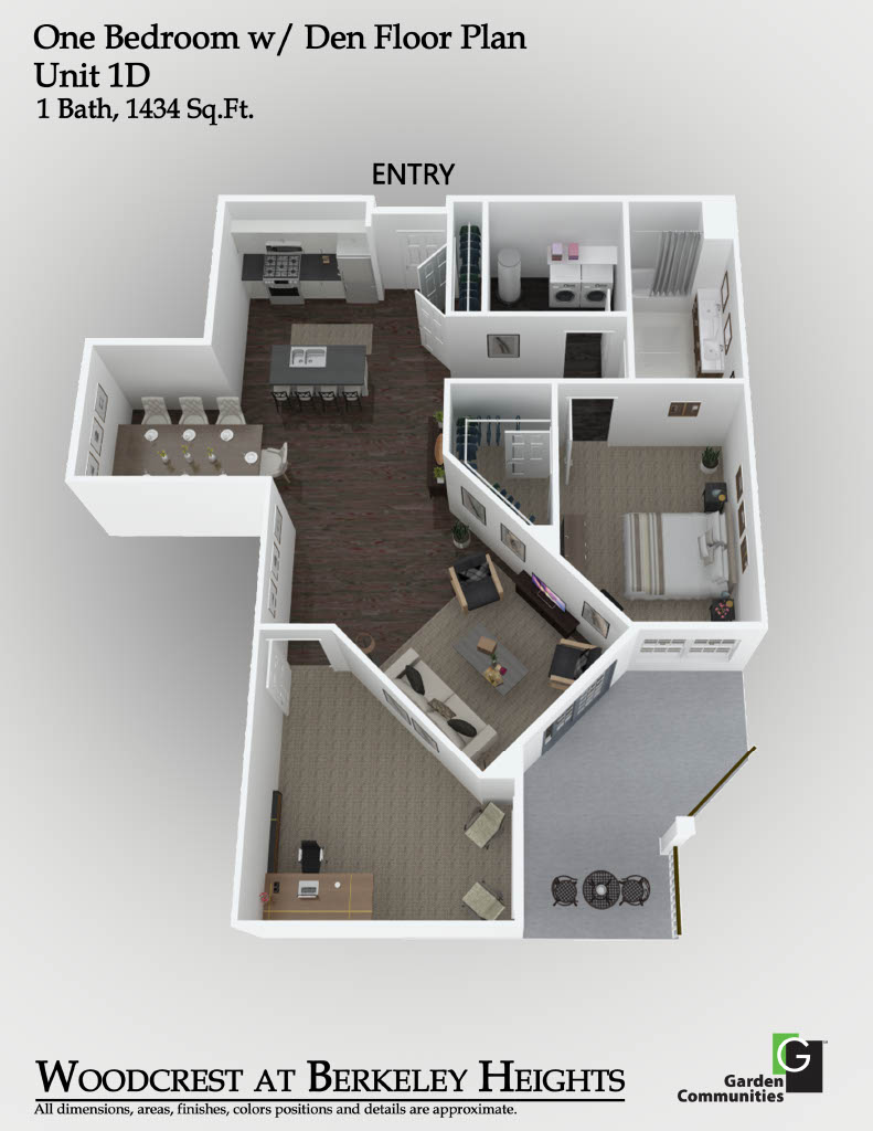 Each residence at Woodcrest at Berkeley Heights is meticulously crafted with top-tier features to enhance your lifestyle. Enjoy cooking and dining at the stylish breakfast bar and appreciate the elegance of quartz kitchen countertops and stainless steel appliances. The living room opens to a private balcony or patio, perfect for relaxation. Voluminous 9' high ceilings and wood plank flooring add to the sense of space and luxury, while carpeted bedrooms ensure comfort. The primary suite boasts a double sink, and select layouts offer generous walk-in closets. Each apartment also includes a convenient in-suite washer and dryer and resident-controlled central air and heat.